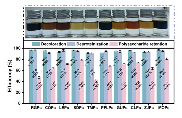 圖2.ATPS@DES對(duì)10種植物來(lái)源多糖(PDPs)的純化通用性研究