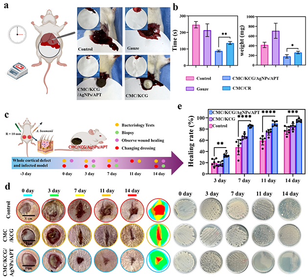 圖3.CMC/KCG/AgNPs/APT促進小鼠感染傷口愈合