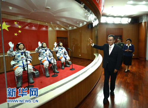 總書(shū)記強調,天宮一號與神舟九號載人交會(huì )對接,是我國載人航天工程的一個(gè)重大突破。希望同志們繼續發(fā)揚載人航天精神,精心做好各項后續工作,奮力奪取首次載人交會(huì )對接任務(wù)全面勝利,為推進(jìn)我國載人航天事業(yè)發(fā)展再立新功。
