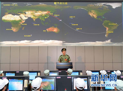 6月16日,中國載人航天工程總指揮常萬(wàn)全在酒泉衛星發(fā)射中心試驗指揮大廳宣布神舟九號飛船發(fā)射成功。 新華社記者 劉建生 攝