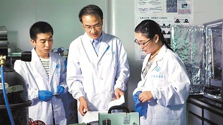 薛群基(左二)在實(shí)驗室指導工作(圖片由中科院蘭州化物所提供 均為資料圖)