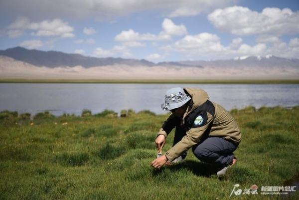 科考團隊負責人張發(fā)起正在采集植物標本。中國科學(xué)院西北高原生物研究所提供