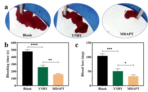 為進(jìn)一步提升止血效果,同樣采用草酸梯度溶蝕混維凹凸棒石黏土,關(guān)聯(lián)了黏土礦物結構變化與止血性能的構效關(guān)系。在此基礎上,團隊以市售產(chǎn)品作為對照,以小鼠斷尾動(dòng)物模型對酸蝕混維凹凸棒石黏土止血性能進(jìn)行評價(jià)。