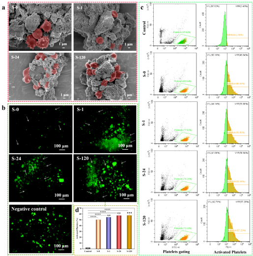 因此,通過(guò)研究紅細胞在混維凹凸棒石黏土表面黏附和血小板激活情況,結合黏附紅細胞數量、形態(tài)和血小板活化率,進(jìn)一步證實(shí)了S-1具有最佳的止血性能。