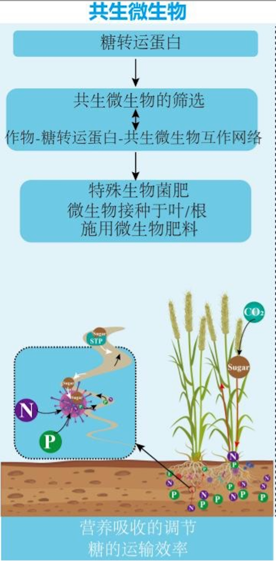 首先,增強糖轉運蛋白與共生微生物的相互作用是提高作物產(chǎn)量的重要策略之一。互惠微生物宛如一群微小卻神通廣大的“精靈”,與植物締結了緊密且精妙的共生契約?;セ菸⑸锟梢詾橹参锾峁└嗟臓I(yíng)養物質(zhì)如氮、磷、鉀;植物則為微生物提供更多的糖分,二者互利共贏(yíng)。糖轉運蛋白就像互惠微生物的“補給車(chē)”,負責它的能量補給。通過(guò)這一策略,可以幫助植物更好地吸收土壤中的養分,比如磷和氮。這就像給植物吃了“營(yíng)養補品”,讓它們長(cháng)得更壯實(shí)。