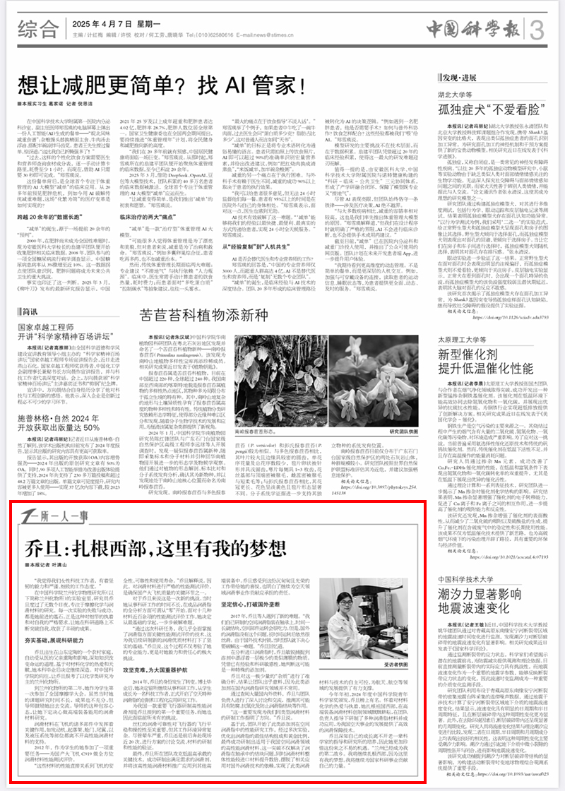 【中國科學(xué)報】喬旦:扎根西部,這里有我的夢(mèng)想