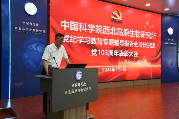 為慶祝中國共產(chǎn)黨成立103周年,弘揚偉大建黨精神,持續深入開(kāi)展黨紀學(xué)習教育,7月1日下午,中國科學(xué)院西北高原生物研究所(以下簡(jiǎn)稱(chēng)西北高原所)召開(kāi)黨紀學(xué)習教育專(zhuān)題輔導報告會(huì )暨慶祝建黨103周年表彰大會(huì )。西北高原所在職職工、離退休職工、研究生參加會(huì )議,會(huì )議由西北高原所黨委副書(shū)記、紀委書(shū)記楊勇剛主持。?