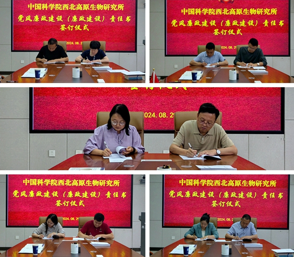 為貫徹落實(shí)黨中央、中國科學(xué)院黨組關(guān)于黨風(fēng)廉政建設責任制的工作部署和要求,明確領(lǐng)導班子及其成員、各部門(mén)負責人、學(xué)科團組組長(cháng)、關(guān)鍵崗位人員在黨風(fēng)廉政建設中的責任,加強全所黨風(fēng)廉政建設,8月29日上午,中國科學(xué)院西北高原生物研究所舉行《黨風(fēng)廉政建設(廉政建設)責任書(shū)》(以下簡(jiǎn)稱(chēng)“責任書(shū)”)簽訂儀式,會(huì )議由黨委副書(shū)記王萍主持。