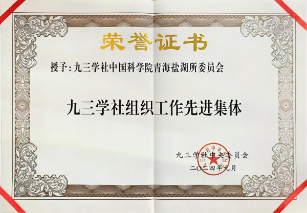近期,經(jīng)九三學(xué)社第十五屆中央委員會(huì )第二十三、二十四次主席辦公會(huì )議研究決定,九三學(xué)社青海鹽湖所委員會(huì )榮獲2023至2024年九三學(xué)社組織工作先進(jìn)集體,也是青海省唯一入選該榮譽(yù)稱(chēng)號的集體組織。