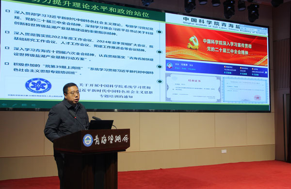 中國科學(xué)院蘭州分院副院長(cháng)、分黨組成員趙培慶,蘭州分院組織人事教育處相關(guān)工作人員,青海鹽湖所領(lǐng)導班子成員及全所職工等220余人參加了會(huì )議。會(huì )議由青海鹽湖所副所長(cháng)鄭詩(shī)禮(主持工作)主持。?