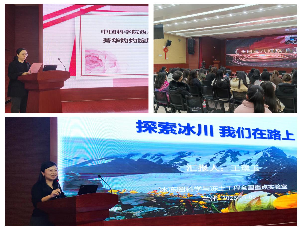 3月6日,婦委會(huì )組織女職工、女研究生集中觀(guān)看了中國科學(xué)院“搶占科技制高點(diǎn) 巾幗建功助攻堅”先進(jìn)事跡報告會(huì ),聆聽(tīng)了2024年度全國三八紅旗手、全國巾幗文明崗、中央和國家機關(guān)三八紅旗手等獲獎代表的感人事跡,感悟新時(shí)代女性科技工作者勇攀高峰的拼搏精神。隨后,婦委會(huì )主任孟憲紅研究員主持召開(kāi)了西北研究院專(zhuān)題報告會(huì ),紀委書(shū)記袁小華代表領(lǐng)導班子向全體女職工致以節日問(wèn)候和美好祝愿,感謝大家為西北研究院科技創(chuàng )新事業(yè)作出的重要貢獻,并鼓勵全體女職工以更加昂揚的精神面貌,在各自崗位上繼續拼搏奮斗。青年女科學(xué)家王璞玉研究員以《探索冰川 我們在路上》為題,分享了自己和團隊扎根冰川的科研往事,為大家帶來(lái)了一場(chǎng)科學(xué)與情懷交織的精神盛宴。