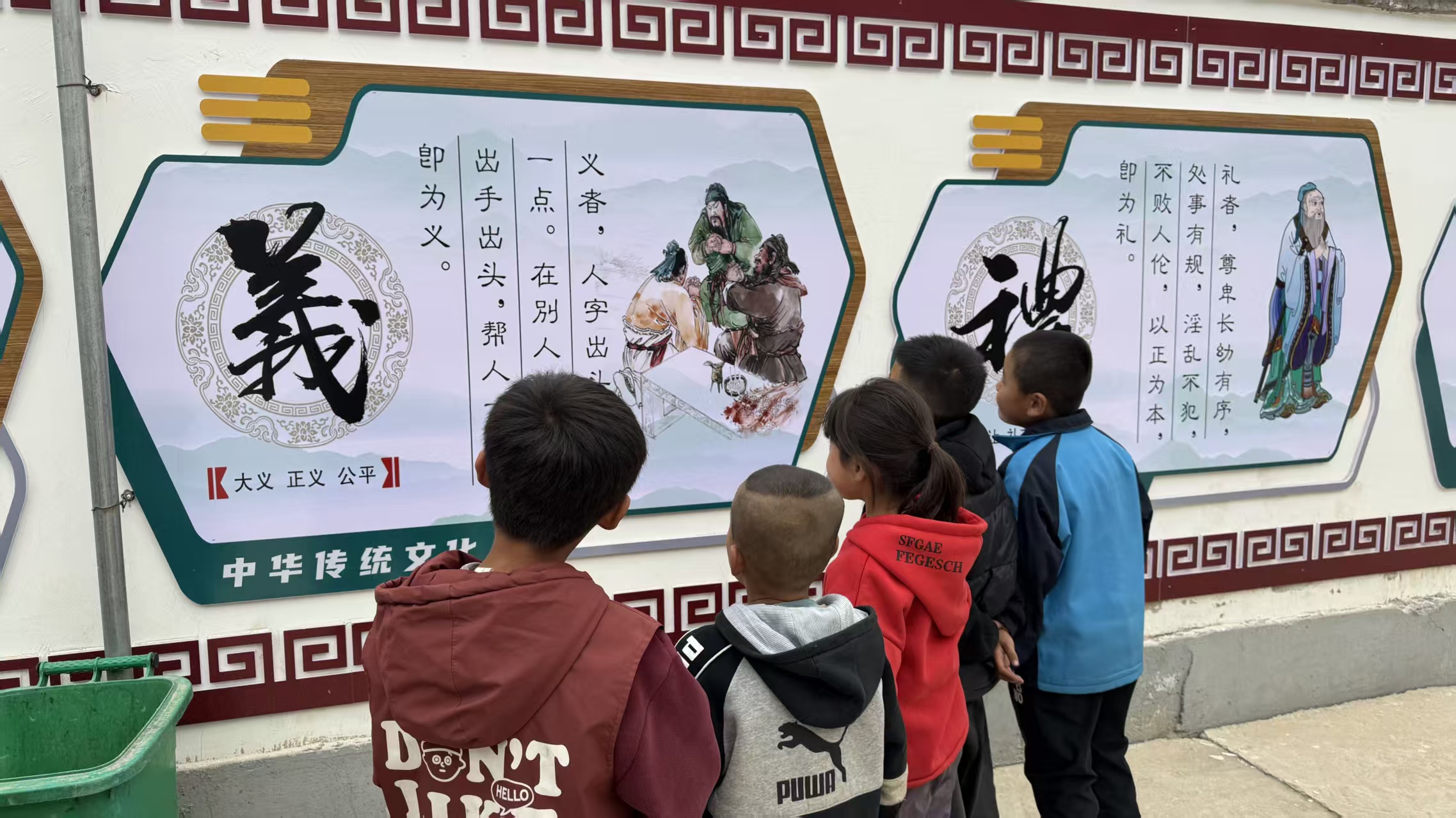 文化墻分多個(gè)版塊,分門(mén)別類(lèi),圖文并茂,從黨和國家教育方針政策介紹,到社會(huì )主義核心價(jià)值觀(guān)宣講,再到科學(xué)家精神、國學(xué)經(jīng)典、勸學(xué)寓言故事以及近代物理所幫扶工作紀實(shí)及活動(dòng)掠影展示等,涉獵廣泛,內容豐富,較好地發(fā)揮了文化墻集中展示、宣傳教育、價(jià)值引領(lǐng)等作用,為孩子們開(kāi)啟了一扇以文化人窗口,搭建了一方交流互促平臺。