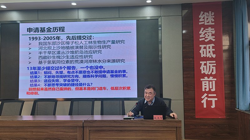 趙文智結合自身多年來(lái)承擔國家自然科學(xué)基金的申請歷程和作為專(zhuān)家的評審經(jīng)驗,圍繞項目申請書(shū)的撰寫(xiě)、評審流程中的關(guān)鍵點(diǎn),從選題的確定、摘要的凝練、立項依據和技術(shù)路線(xiàn)等方面詳細介紹了相關(guān)技巧和要領(lǐng),并提出了切實(shí)可行的申報建議;牛麗從基金管理的角度介紹了西北生態(tài)環(huán)境資源研究院近五年來(lái)自然基金申請和資助情況,重點(diǎn)圍繞項目申請中不予受理原因分析、本單位相關(guān)工作舉措和基金申請政策新變化等做了詳細闡述。最后,兩位專(zhuān)家與參會(huì )人員就“科學(xué)問(wèn)題的發(fā)現凝練”、“項目申報限項”、“包干制”政策及基金申報過(guò)程中的重點(diǎn)難點(diǎn)進(jìn)行了深入交流。