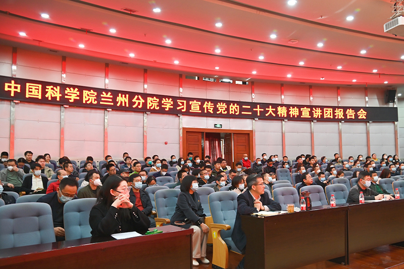 蘭州地區院屬各單位領(lǐng)導班子及黨員干部職工300余人參加了報告會(huì );青海鹽湖研究所、西北高原生物研究所以視頻會(huì )議形式聆聽(tīng)了報告。會(huì )議由蘭州分院分黨組副書(shū)記、系統單位黨委副書(shū)記陳改學(xué)主持。