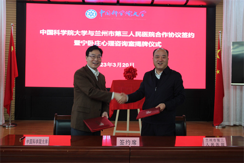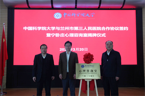 儀式上,國科大心理中心肖斌介紹了國科大學(xué)生心理健康工作開(kāi)展有關(guān)情況。與會(huì )有關(guān)領(lǐng)導分別代表國科大與蘭州市第三人民醫院共同簽訂了合作協(xié)議,并共同為心理咨詢(xún)室揭牌。