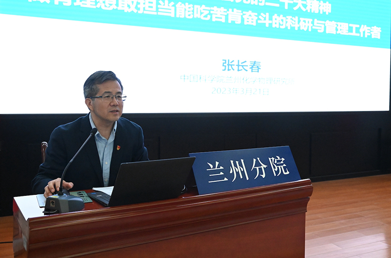 蘭州化學(xué)物理研究所紀委書(shū)記張長(cháng)春講《深入學(xué)習領(lǐng)會(huì )黨的二十大精神 做有理想敢擔當能吃苦肯奮斗的科研與管理工作者》:立足崗位實(shí)際,將二十大精神和科研管理工作融會(huì )貫通,鼓勵學(xué)員們善作善成、奮勇?tīng)幭?,在科研和管理工作中有所成就?nbsp;
