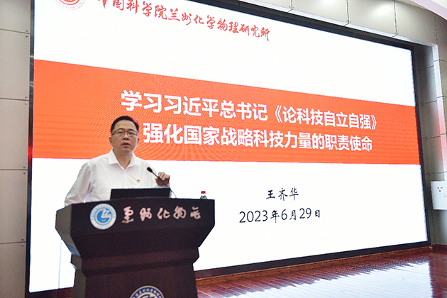 6月29日下午,中國科學(xué)院蘭州化學(xué)物理研究所舉行慶祝建黨102周年專(zhuān)題黨課報告會(huì )暨革命傳統教育活動(dòng)。全所黨員干部職工和研究生黨員、離退休黨員代表和民主黨派代表參加會(huì )議。黨委委員、副所長(cháng)張俊彥主持會(huì )議。
