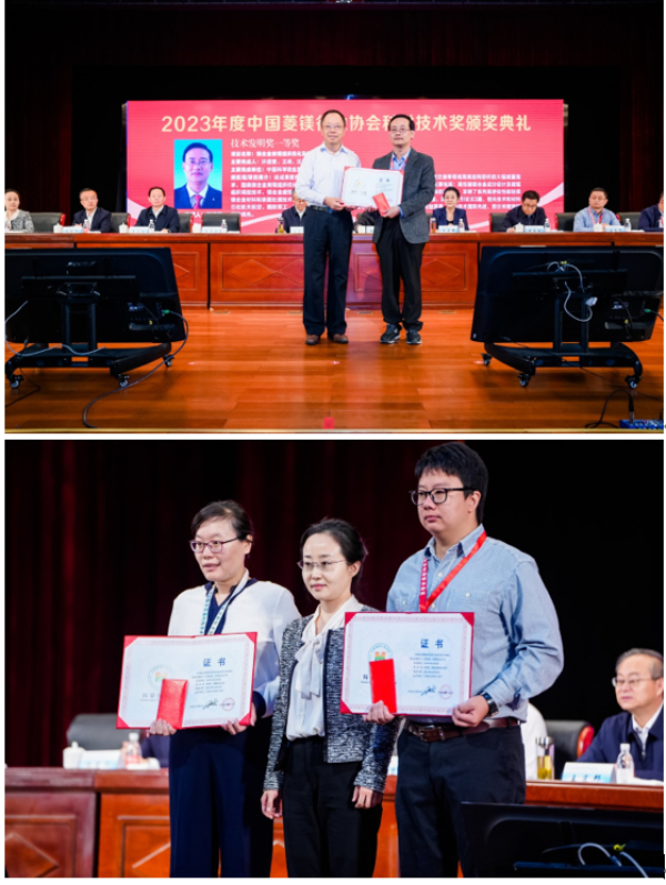 王定邦、吳志堅共同為青海柴循鹽湖產(chǎn)業(yè)研究有限公司揭牌,吳志堅、李穎虹分別為2023年度中國菱鎂協(xié)會(huì )科學(xué)技術(shù)獎技術(shù)發(fā)明獎一等獎和青年科技獎獲得者頒發(fā)證書(shū)。