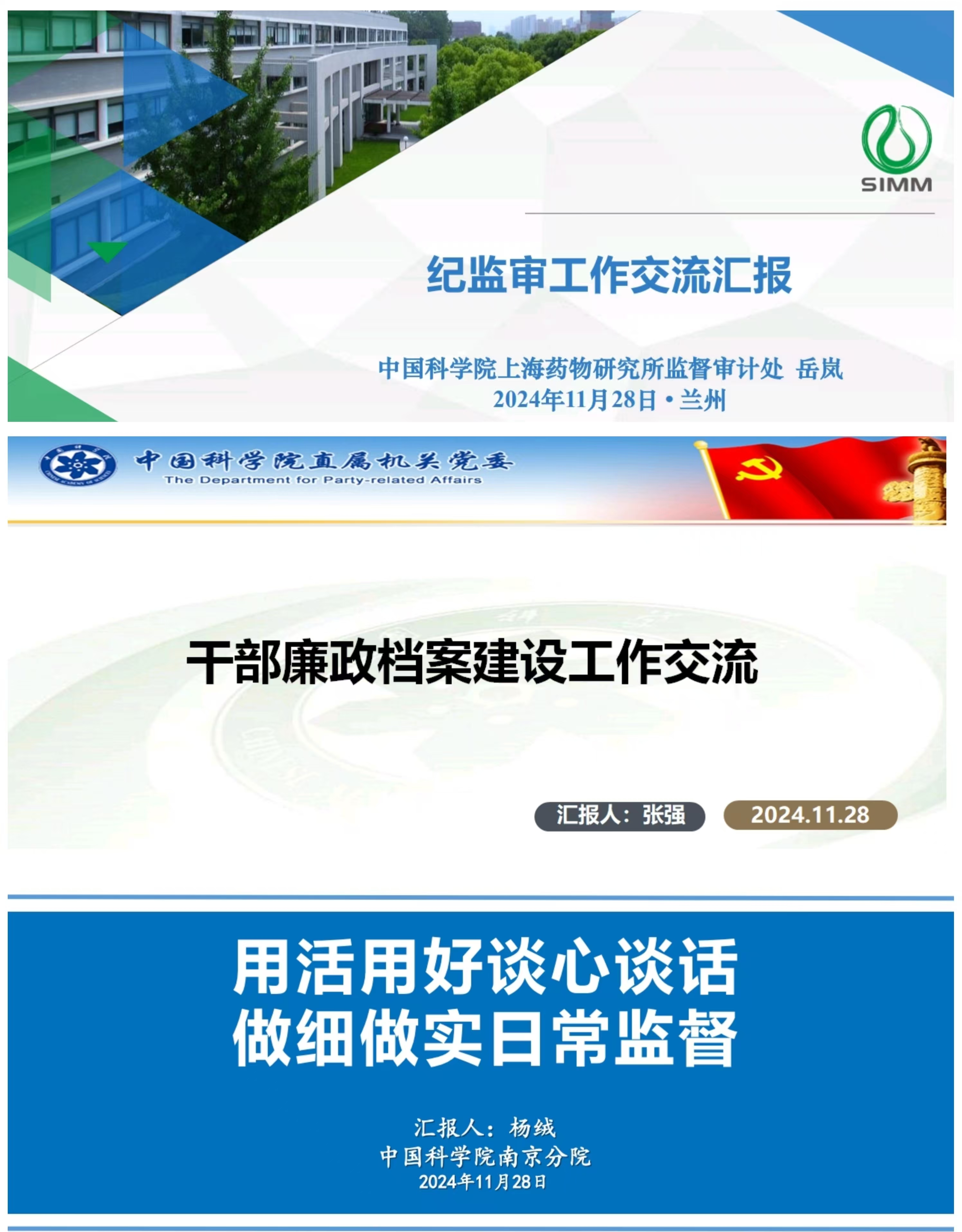 為進(jìn)一步加強黨員監督管理,落實(shí)落細廉政風(fēng)險防控,中國科學(xué)院直屬機關(guān)紀委紀檢工作部張強重點(diǎn)講述了“干部廉政檔案建設”工作經(jīng)驗;南京分院紀檢辦主任楊絨作題為《用活用好談心談話(huà) 做細做實(shí)日常監督》專(zhuān)題報告;上海藥物所紀委副書(shū)記、監審處處長(cháng)岳嵐就研究所紀監審工作實(shí)務(wù)作分享交流。此外,參訓學(xué)員還集中觀(guān)看了典型違紀違法行為警示教育視頻資料。