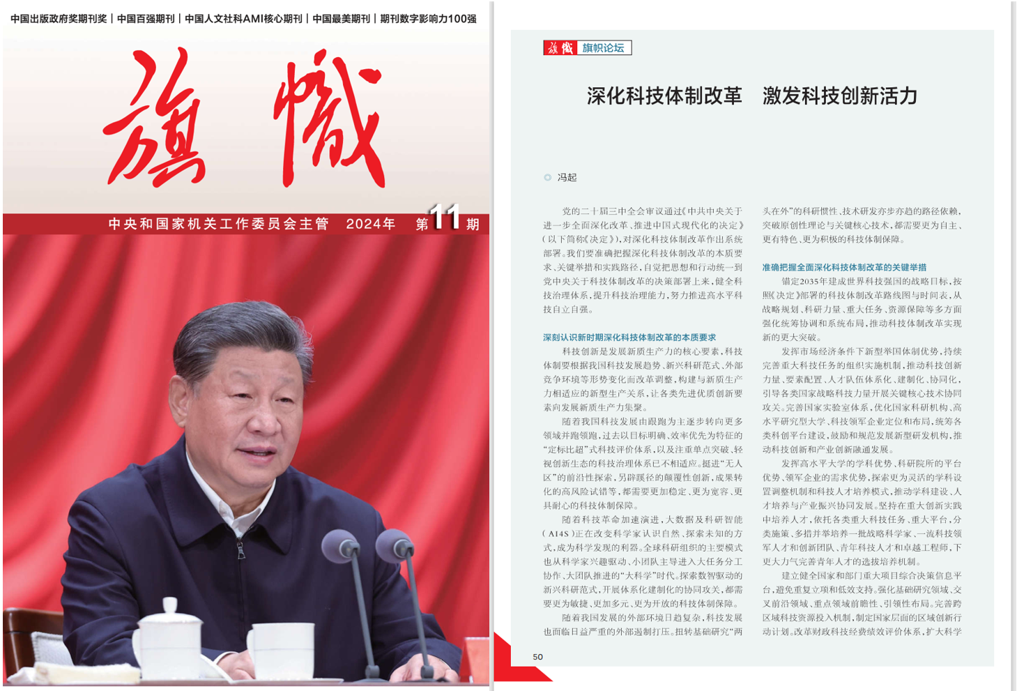 《旗幟》雜志刊發(fā)馮起院士署名文章《深化科技體制改革 激發(fā)科技創(chuàng )新活力》