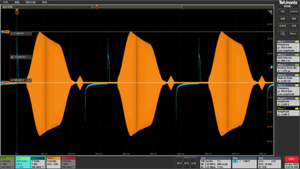 圖2:3Hz腔體單間隙電壓取樣信號,腔體包含三個(gè)加速間隙