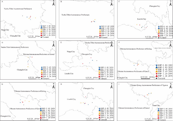 未來(lái)氣候情景下青藏高原受脅鳥(niǎo)類(lèi)適宜棲息地重心遷移格局