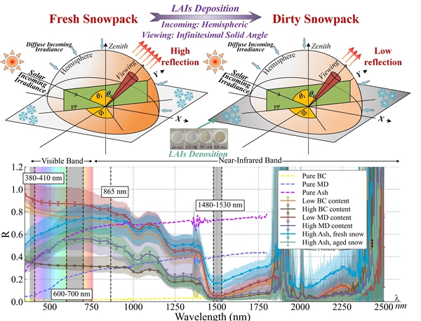 ES&T:積雪不同吸光物質(zhì)(黑碳、沙塵和灰分)對積雪HDRF特征的影響研究獲進(jìn)展