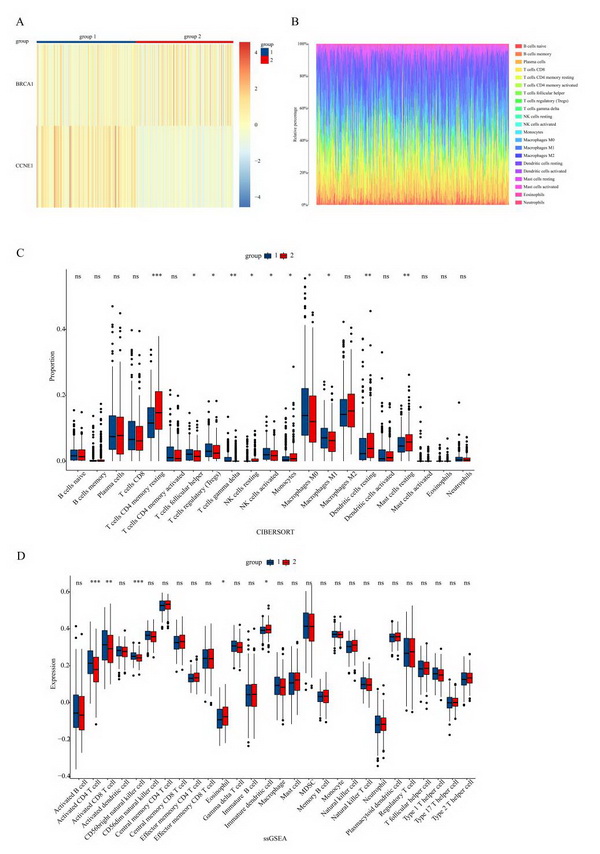 圖1 冬蟲(chóng)夏草抗肺腺癌作用的癌癥基因組圖譜數據共識聚類(lèi)分析、CIBERSORT分析和ssGSEA結果