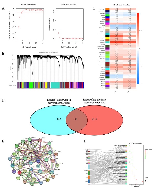 圖2 冬蟲(chóng)夏草抗肺腺癌作用的加權基因共表達網(wǎng)絡(luò )分析(WGCNA)結果