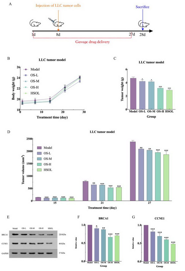圖3 冬蟲(chóng)夏草抗肺腺癌作用的荷瘤小鼠體內實(shí)驗驗證結果