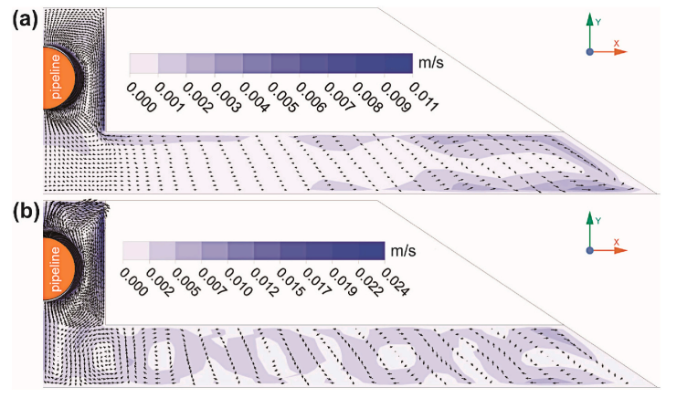圖5?ITCPE結構中多孔介質(zhì)層冷暖季對流?(a)暖季?(b)冷季