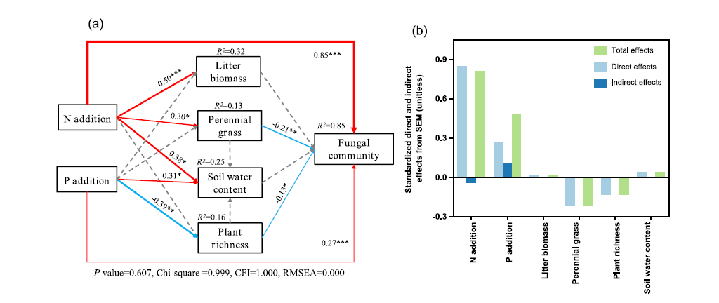 圖3 結構方程模型描述了氮添加和磷添加對真菌群落結構的直接和間接影響
