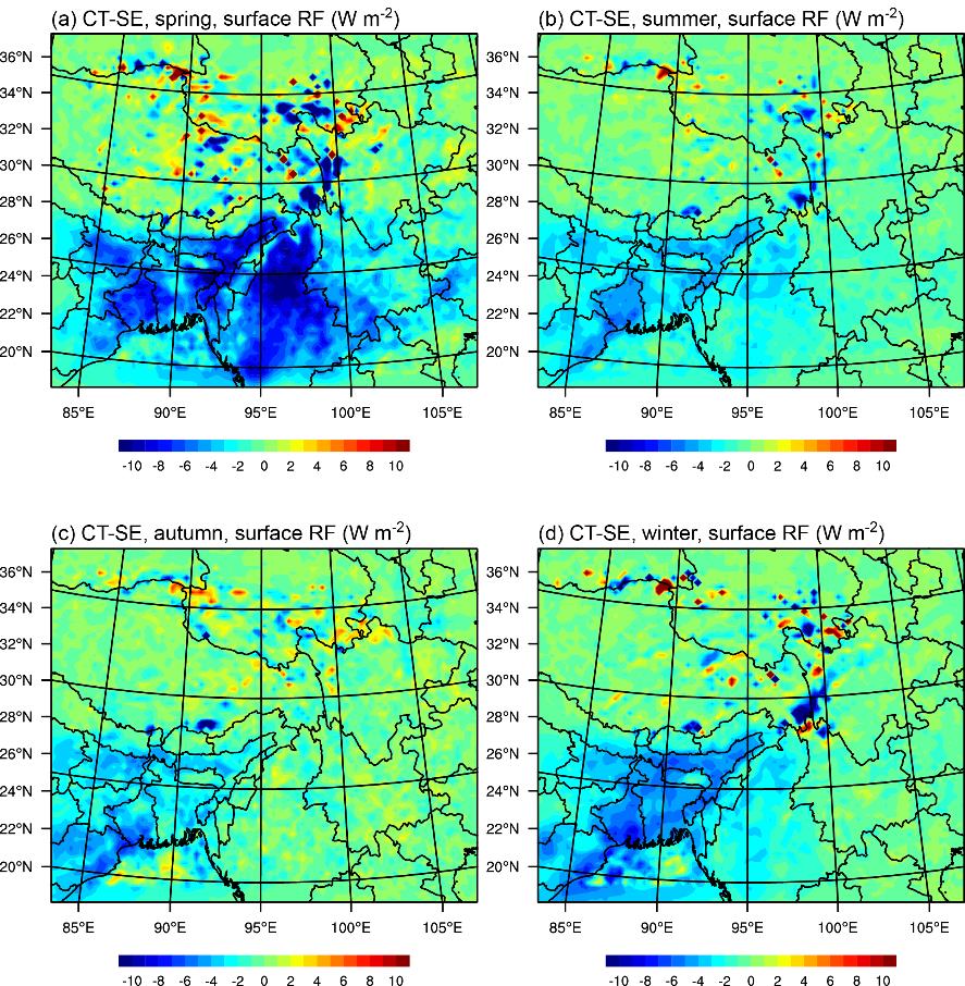 圖2跨境輸入黑碳在研究區大氣層產(chǎn)生的輻射強迫