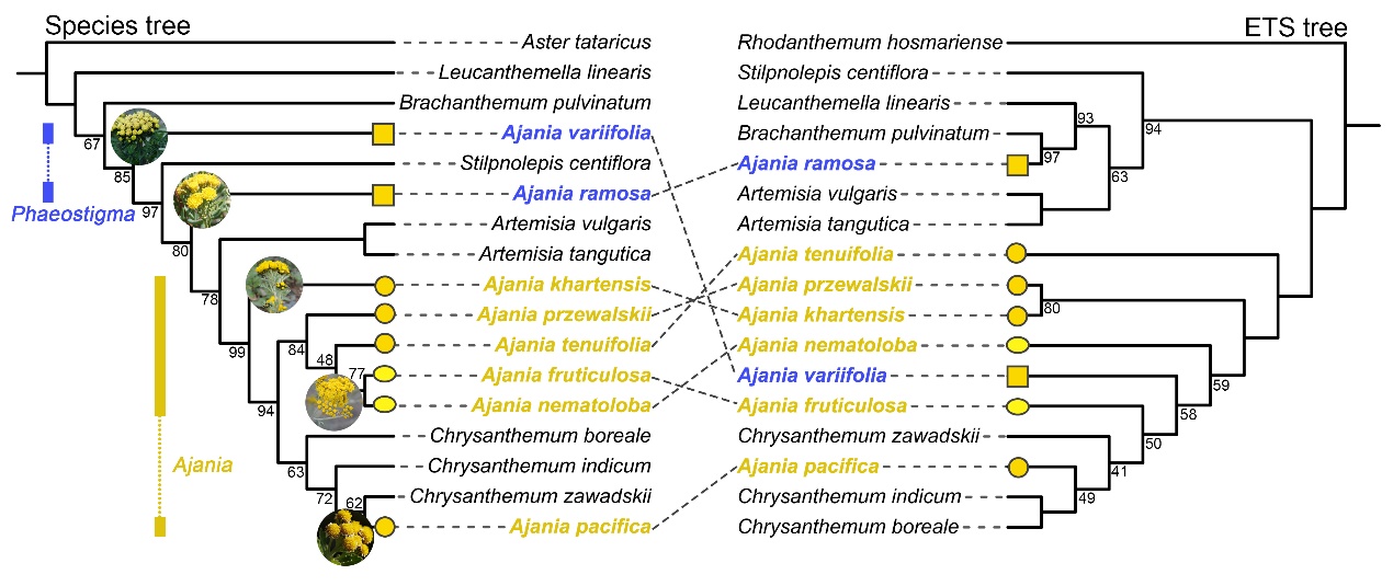亞菊屬及其近緣類(lèi)群系統發(fā)育不一致示意圖