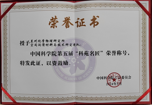 蘭州化物所空間潤滑材料與技術(shù)研究團隊獲第五屆中國科學(xué)院科苑名匠表彰