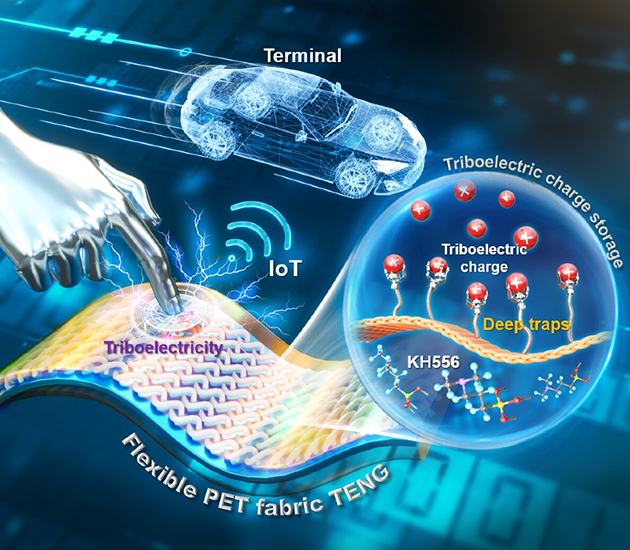 摩擦起電過(guò)程中產(chǎn)生的電荷會(huì )瞬時(shí)存儲在電介質(zhì)表面,進(jìn)而被兩種不同類(lèi)型的陷阱(淺陷阱和深陷阱)捕獲。其中,淺陷阱中的電荷容易逸出,優(yōu)先耗散到環(huán)境中,而深陷阱中的電荷則因為極難逸出,可長(cháng)期儲存。因此,影響摩擦層電荷耗散率的關(guān)鍵因素是陷阱捕獲電荷和被捕獲電荷的逃逸能力?;诖?,該團隊通過(guò)系統研究,揭示了載流子深陷阱在摩擦電荷存儲中的機制,通過(guò)分子自組裝技術(shù)在織物摩擦層界面構建載流子深陷阱的方式增加TENG的電輸出,將該織物TENG用于物聯(lián)網(wǎng)可穿戴電子設備的電源模塊,實(shí)現了對機械運動(dòng)的穩定控制。相關(guān)研究成果發(fā)表在Advanced Materials(2024,2303389)上。