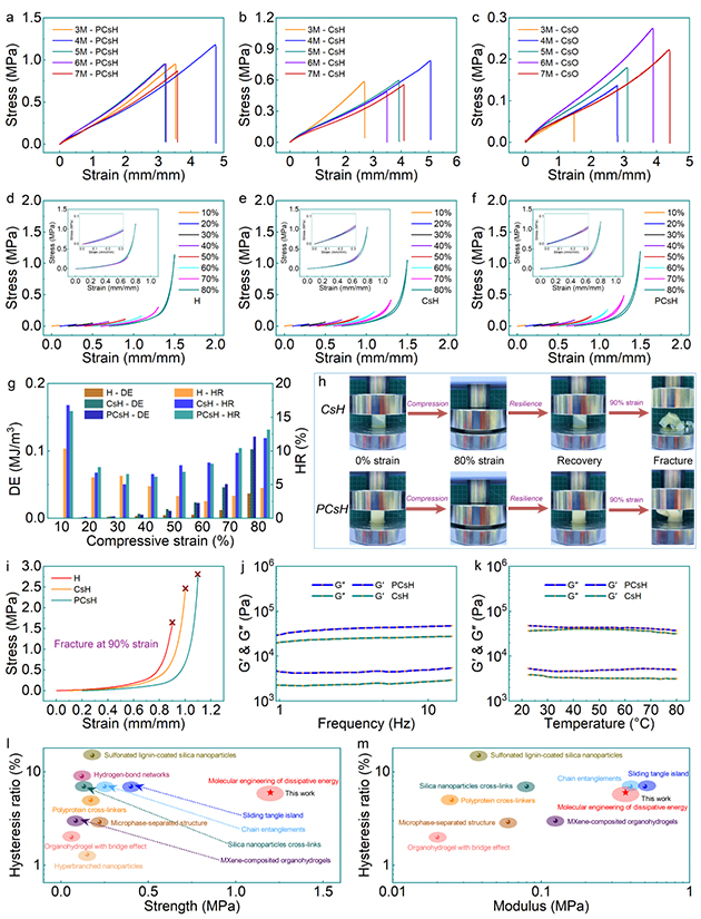 圖4. 耗散能分子工程構筑的超彈性水凝膠的實(shí)驗驗證