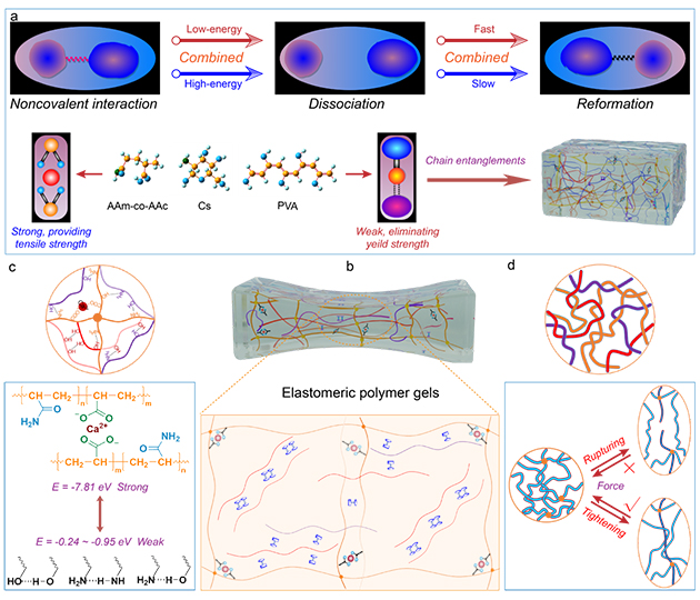 圖5. 耗散能分子工程構筑的超彈性水凝膠的作用機制