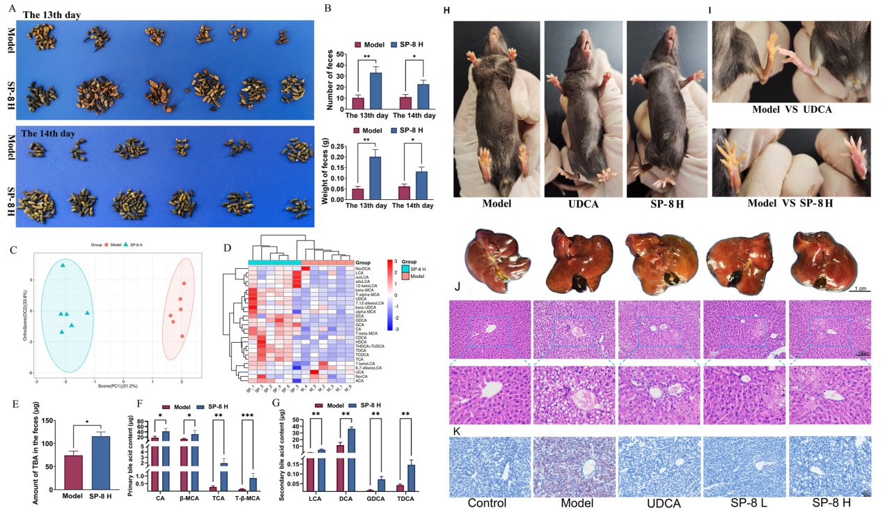 膽汁淤積性肝?。–LD)是一種復雜的肝膽疾病,由肝細胞水平的膽汁形成缺陷或膽管水平的膽汁分泌和流動(dòng)受損引起。根據膽汁淤積的不同部位,可分為肝內膽汁淤積和肝外膽汁淤積。其共同特點(diǎn)是肝細胞內膽汁酸(BAs)等有毒物質(zhì)的過(guò)度積累引起膽汁淤積性肝損傷。持續性膽汁淤積可進(jìn)一步誘導氧化應激和炎癥信號反應,最終導致肝纖維化或肝細胞壞死。近年來(lái),全球膽汁淤積癥的發(fā)病率逐年上升,尤其是在兒童、青少年和婦女中高發(fā)。目前,我國仍然缺少具有自主知識產(chǎn)權的高效的治療CLD的藥物。臨床上治療一直依賴(lài)美國FDA認證的熊去氧膽酸和奧貝膽酸,但它們的有效率不足50%,副作用明顯且價(jià)格昂貴。