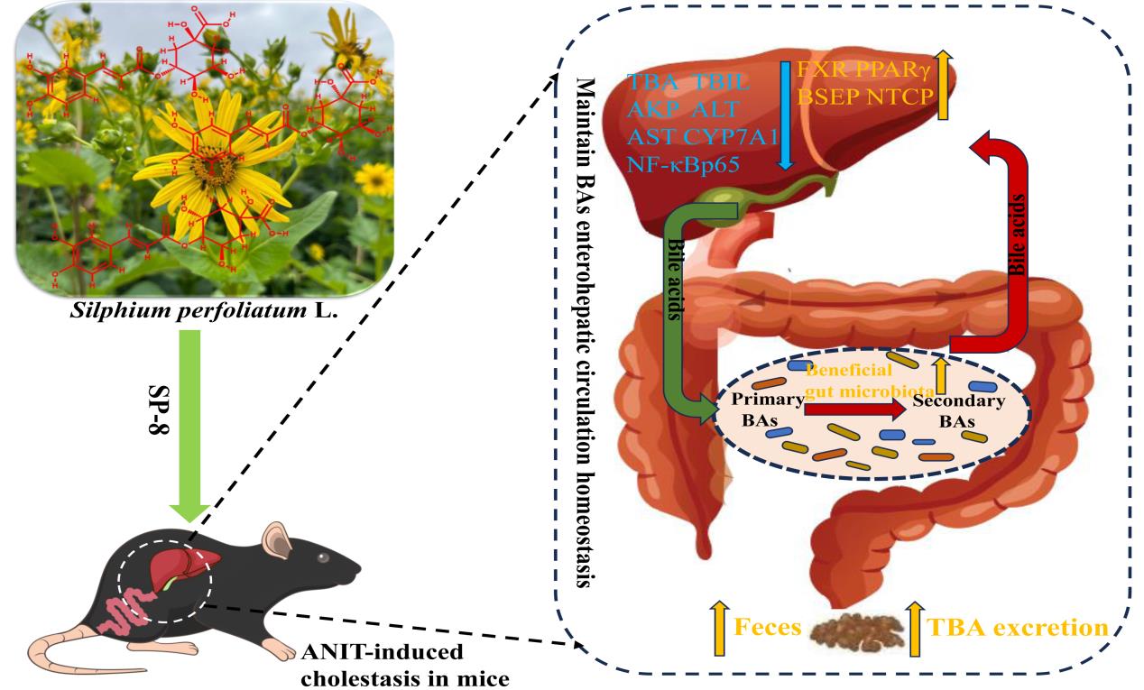 中國科學(xué)院西北高原生物研究所高原藥用資源生態(tài)保護與繁育研究團隊從一種傳統藥材中篩選得到咖啡??鼘幩峄钚越M份,對CLD具有顯著(zhù)的治療效果。該組份不僅能夠通過(guò)調控FXR信號通路,減少BAs的合成,而且能夠通過(guò)促進(jìn)BAs的肝腸循化,加速有害次級膽汁酸通過(guò)糞便排出體外,同時(shí)具有極強的抗炎活性,對膽汁淤積引起的肝臟損傷具有極強的保護和治療作用。該研究全面證實(shí)了咖啡??鼘幩峄钚越M份對膽汁淤積癥的治療效果并闡明了其作用機制,證實(shí)該組份具有很好的藥物開(kāi)發(fā)潛力。