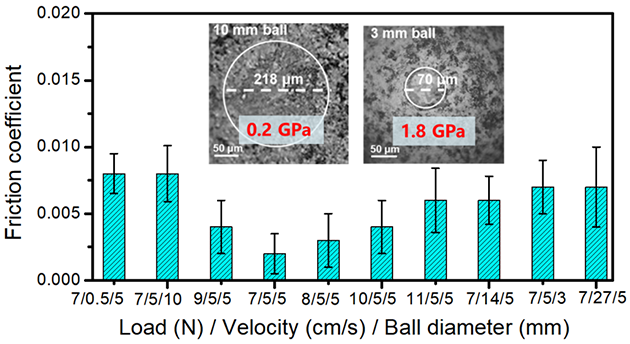 研究人員提出了“氫調制界面摩擦”策略,通過(guò)非晶與晶體異質(zhì)配副設計,構建含氫碳薄膜/二維復合涂層體系,實(shí)現了寬承載、寬速度、惰性氣氛等模擬工況下宏觀(guān)尺度固體超潤滑。相關(guān)成果發(fā)表在Advanced Materials?。?023,2303580)和Advanced Science(2024,2309701)上。蘭州化物所楊興助理研究員為論文第一作者,王永富副研究員和張俊彥研究員為共同通訊作者。