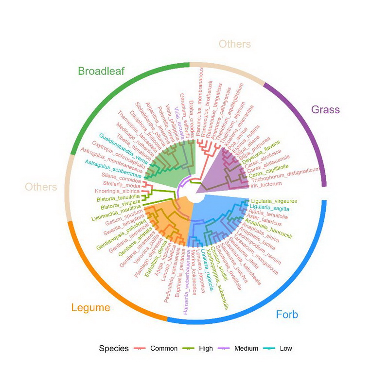 高寒草甸植物群落系統發(fā)育樹(shù)