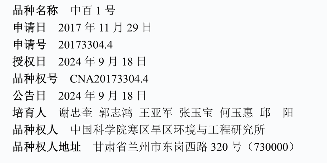 近日,中國科學(xué)院西北生態(tài)環(huán)境資源研究院蘭州生態(tài)農業(yè)試驗研究站(簡(jiǎn)稱(chēng)“蘭州農業(yè)站”)謝忠奎研究員團隊自主選育的“中百1號”蘭州百合新品種上榜農業(yè)農村部2024年第826號授予植物新品種權名單。這是我國首個(gè)被授予植物新品種權的優(yōu)質(zhì)高產(chǎn)食用百合品種,同時(shí)也是西北研究院首次獲植物品種權授權。
