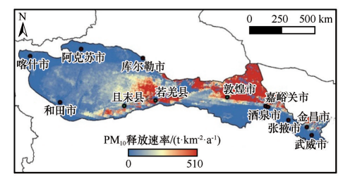 圖2 2000—2023年研究區多年平均PM10釋放速率空間分布