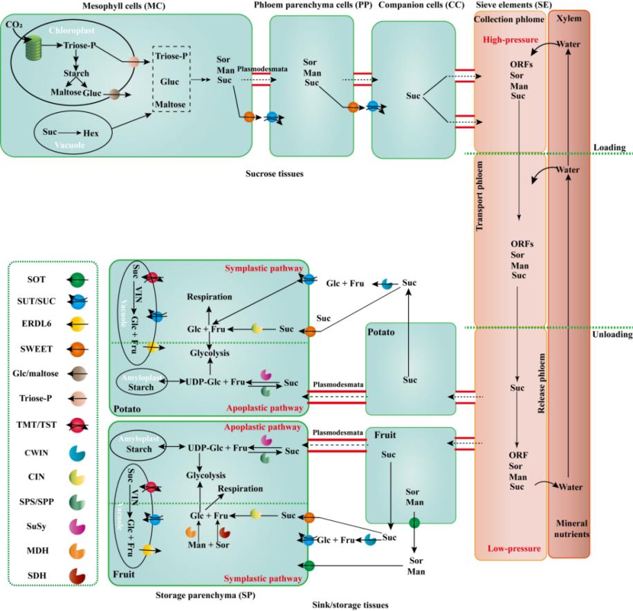 圖2.?糖轉運蛋白從源細胞到庫細胞的長(cháng)距離糖運輸模型