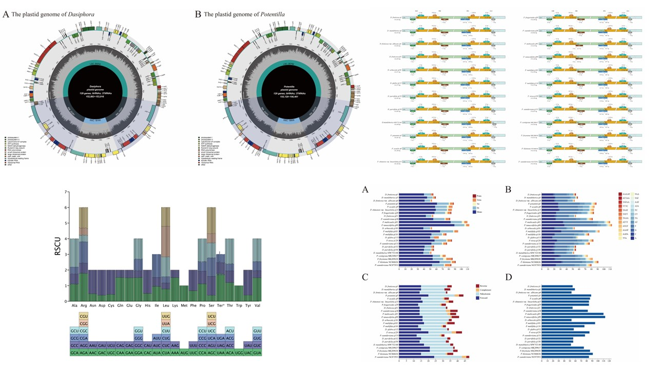 研究結果以“Comparative and phylogenetic analysis of Potentilla and Dasiphora (Rosaceae) based on plastid genome”為題,于2025年2月10日在BMC Plant Biology(中國科學(xué)院二區Top,IF=4.3)發(fā)表。西北高原所碩士研究生李孝平為第一作者,西北高原所張發(fā)起研究員為通訊作者。該工作得到了第二次青藏高原綜合科學(xué)考察研究、青海省重大科技專(zhuān)項、中國科學(xué)院戰略生物資源計劃、中國科學(xué)院-青海省三江源國家公園聯(lián)合研究專(zhuān)項和中國科學(xué)院“西部之光”人才培養計劃等項目資助。