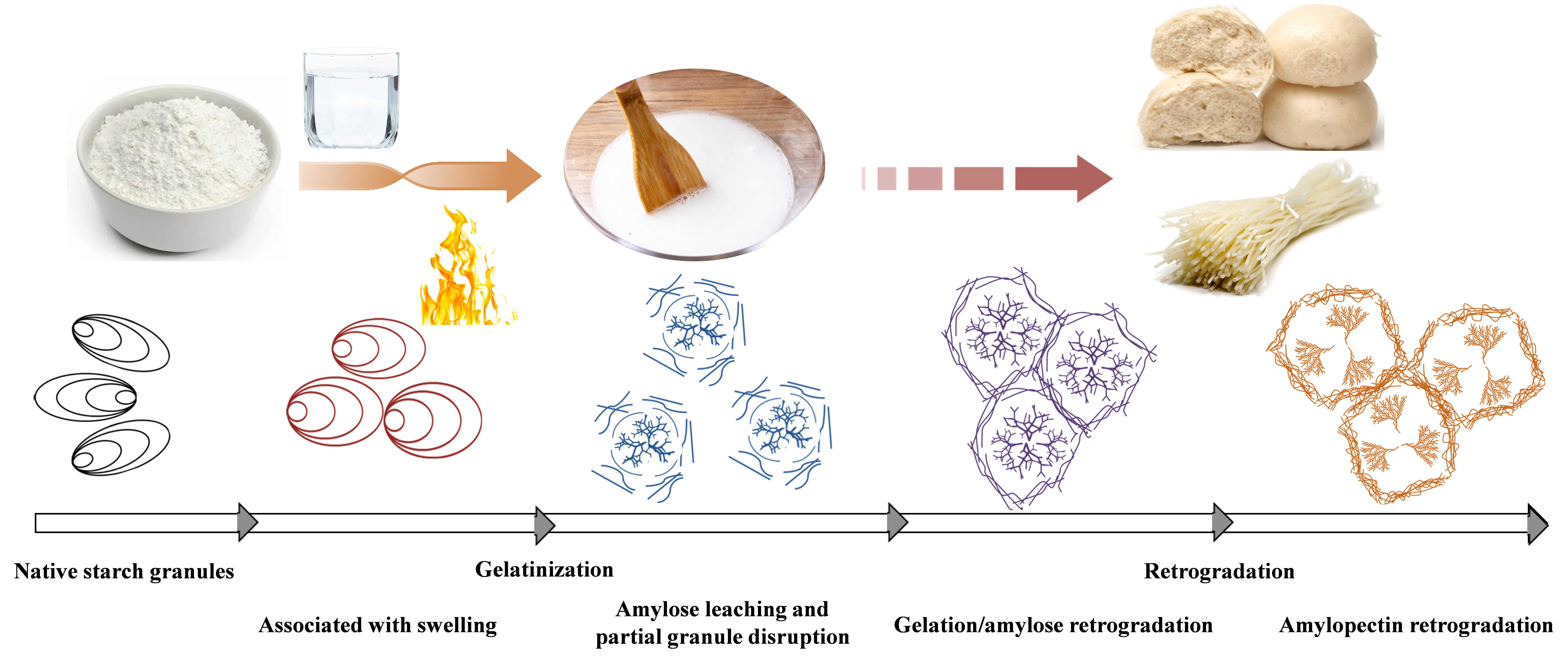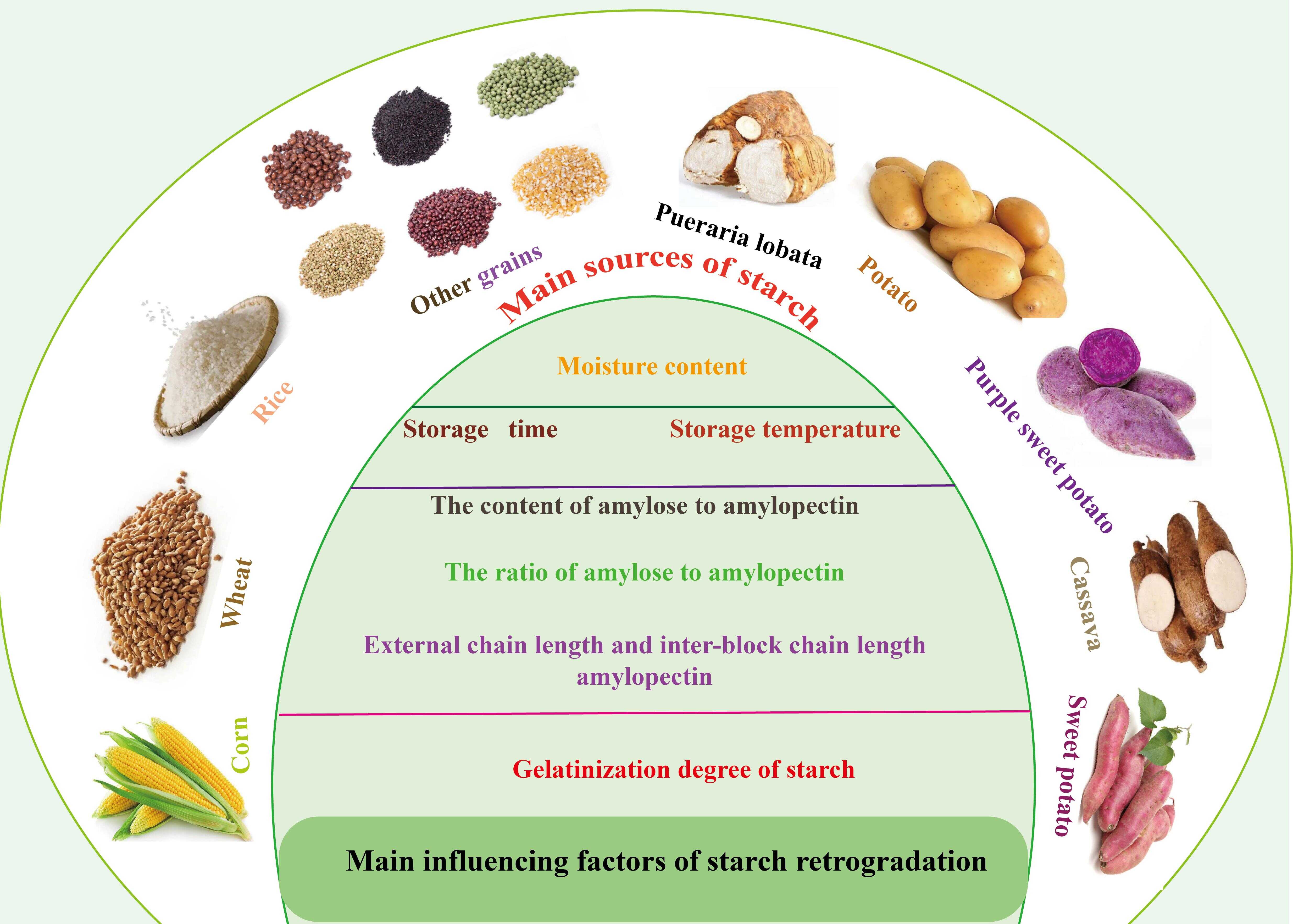 近日,中國科學(xué)院蘭州化學(xué)物理研究所天然藥物與化學(xué)測量研究中心食品化學(xué)與安全檢測團隊在抑制淀粉回生方面發(fā)表相關(guān)綜述文章。全面總結了影響淀粉回生的關(guān)鍵因素,包括淀粉的來(lái)源、組成、糊化程度、水分含量、儲存溫度和時(shí)間等。研究指出,不同來(lái)源的淀粉由于其化學(xué)組成和結構差異,回生行為存在顯著(zhù)不同。