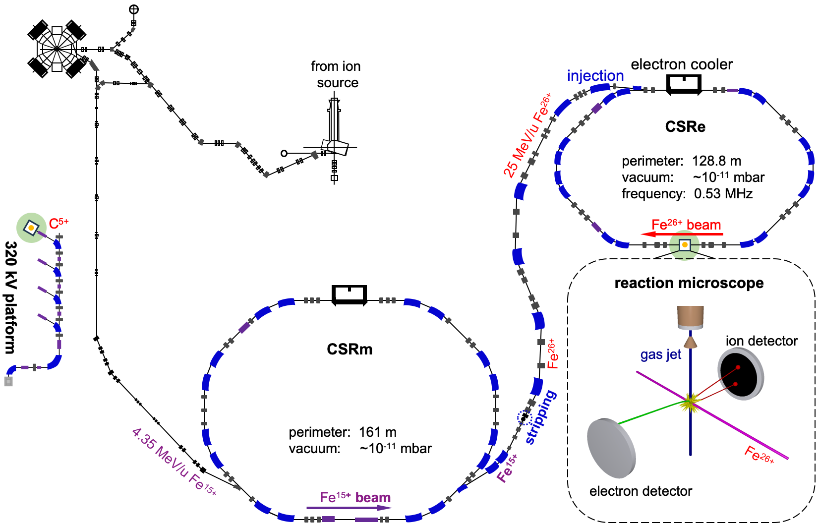 圖1:蘭州重離子加速器大科學(xué)裝置和反應顯微成像譜儀示意圖(圖源/近代物理所)