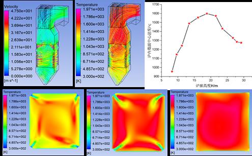近期,團隊在華能蘭州西固熱電有限公司和西安熱工研究院的大力支持下,首先完成了165MW機組的數值模擬,結果表明,四角切圓型鍋爐爐內燃燒煙氣溫度分布曲線(xiàn)呈現正態(tài)-拋物線(xiàn)狀態(tài),中間燃燒區域溫度高,爐底及爐膛出口溫度偏低,最高燃燒溫度始終分布在主燃燒與 SOFA之間,因此重點(diǎn)噴涂區域為主燃燒區域和 SOFA 區域。