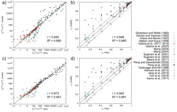 應用該理論,成功對過(guò)去70多年來(lái)實(shí)驗測定的各類(lèi)離子交換膜體系中離子活度系數數據進(jìn)行了統一描述。研究特別強調:膜內復雜的聚合物網(wǎng)絡(luò )作為拓撲整體對自由離子行為具有決定性作用。(式3)中的標度因子β作為表征膜聚合物整體拓撲結構的關(guān)鍵參數,為先進(jìn)離子交換膜的設計提供了全新理論坐標。